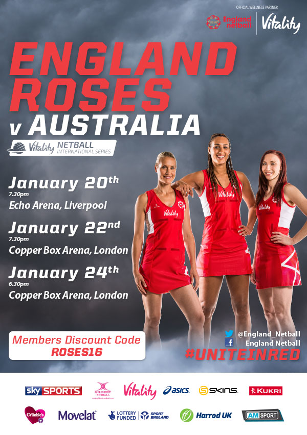 Get your tickets quickly to see the Roses attempt to outshine the Australian Diamonds! Ticket sales are going fantastically well with over half already sold for both Copper Box matches and 60% of hospitality tickets being snapped up! England Netball members can use the discount code on the attached flyer! Further information can also be found here